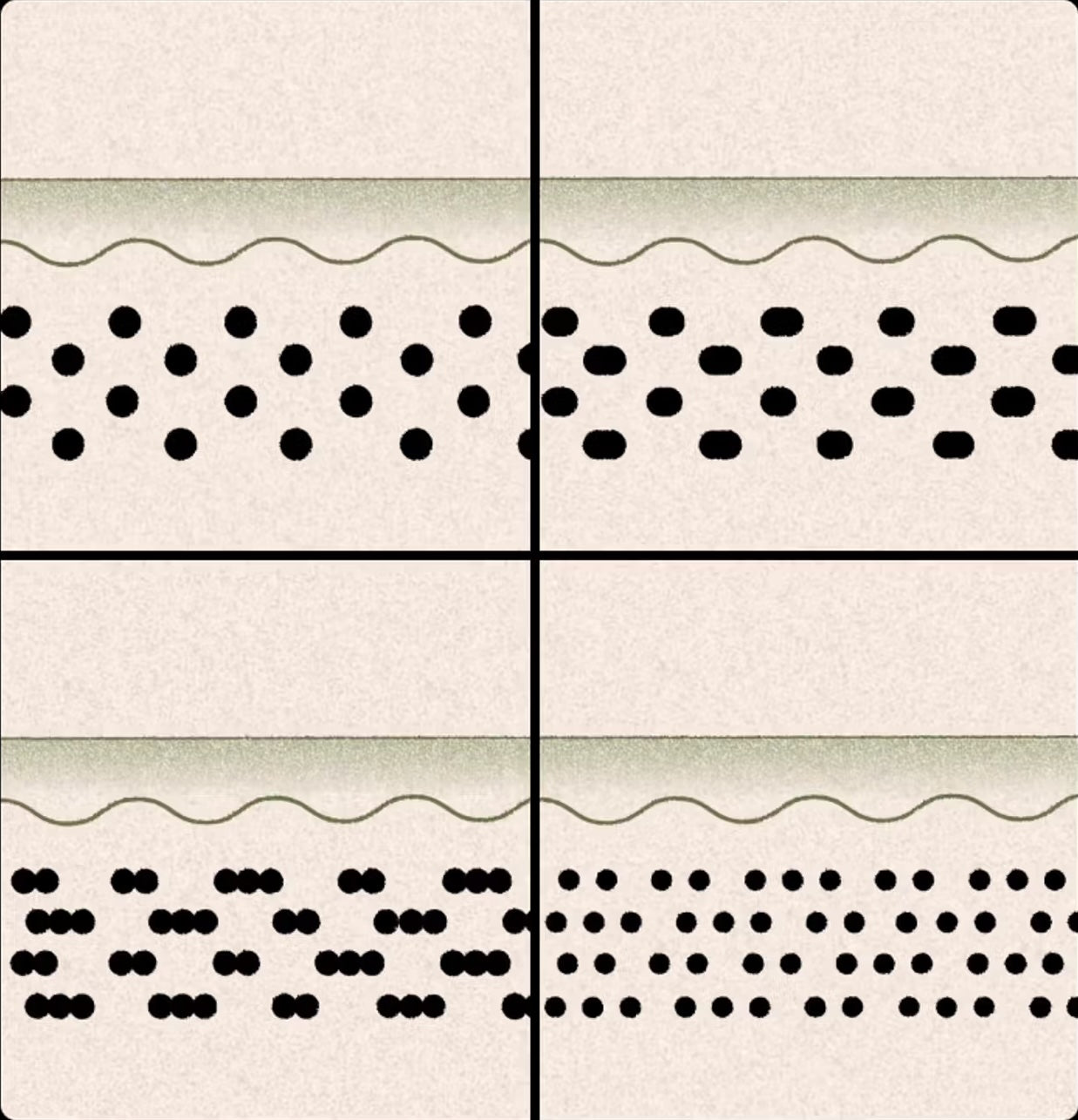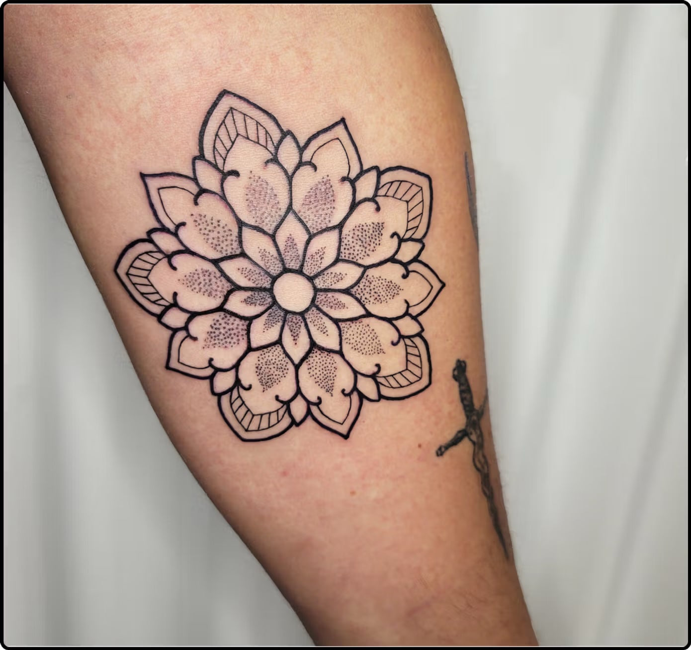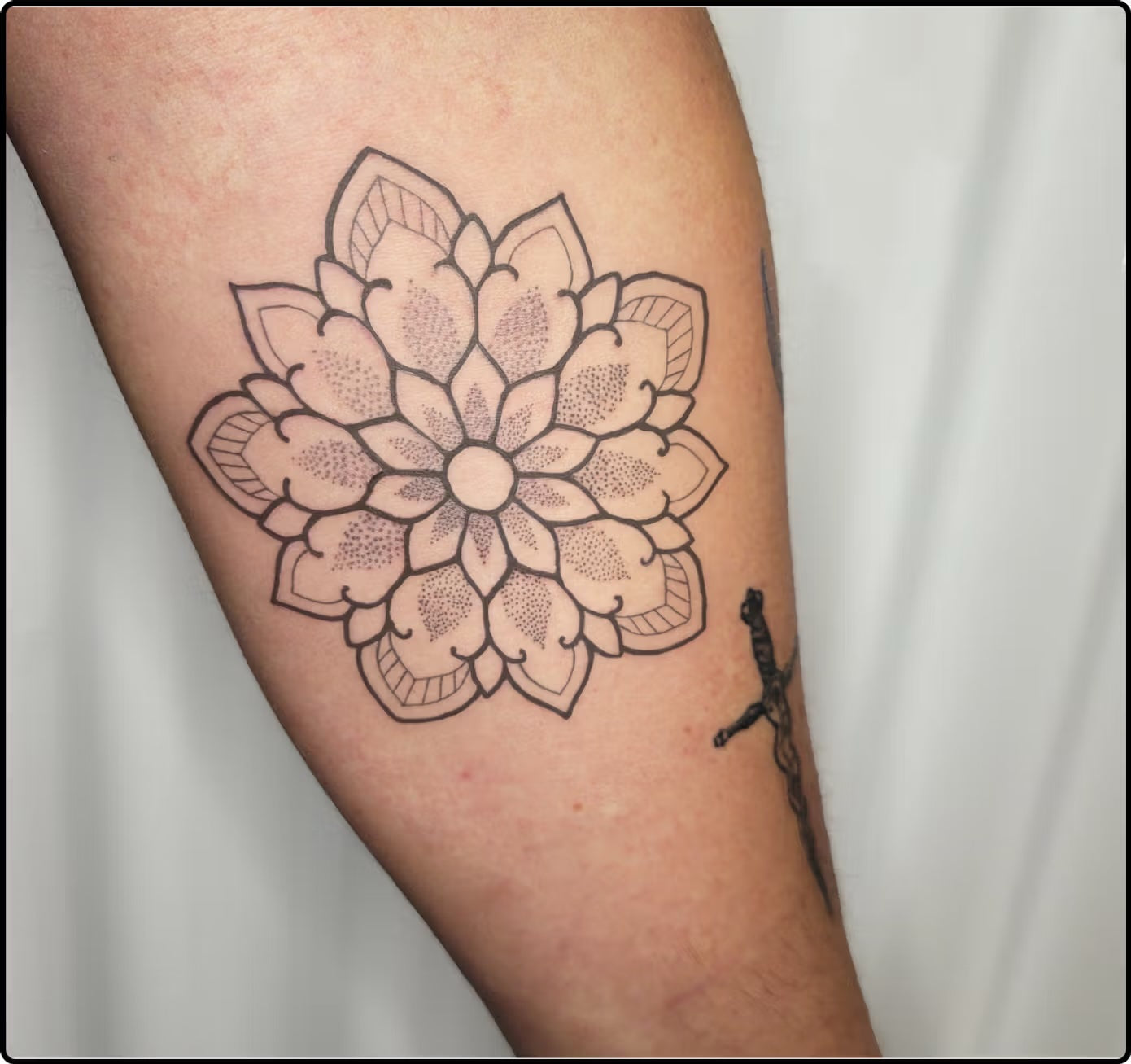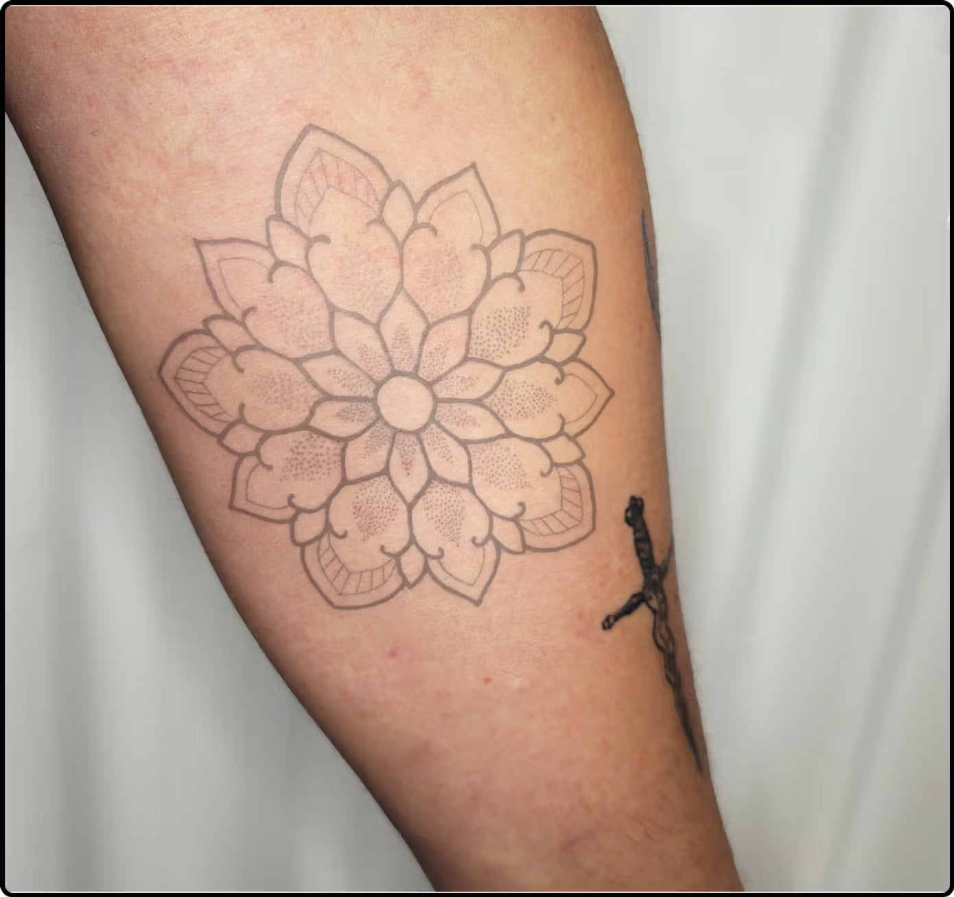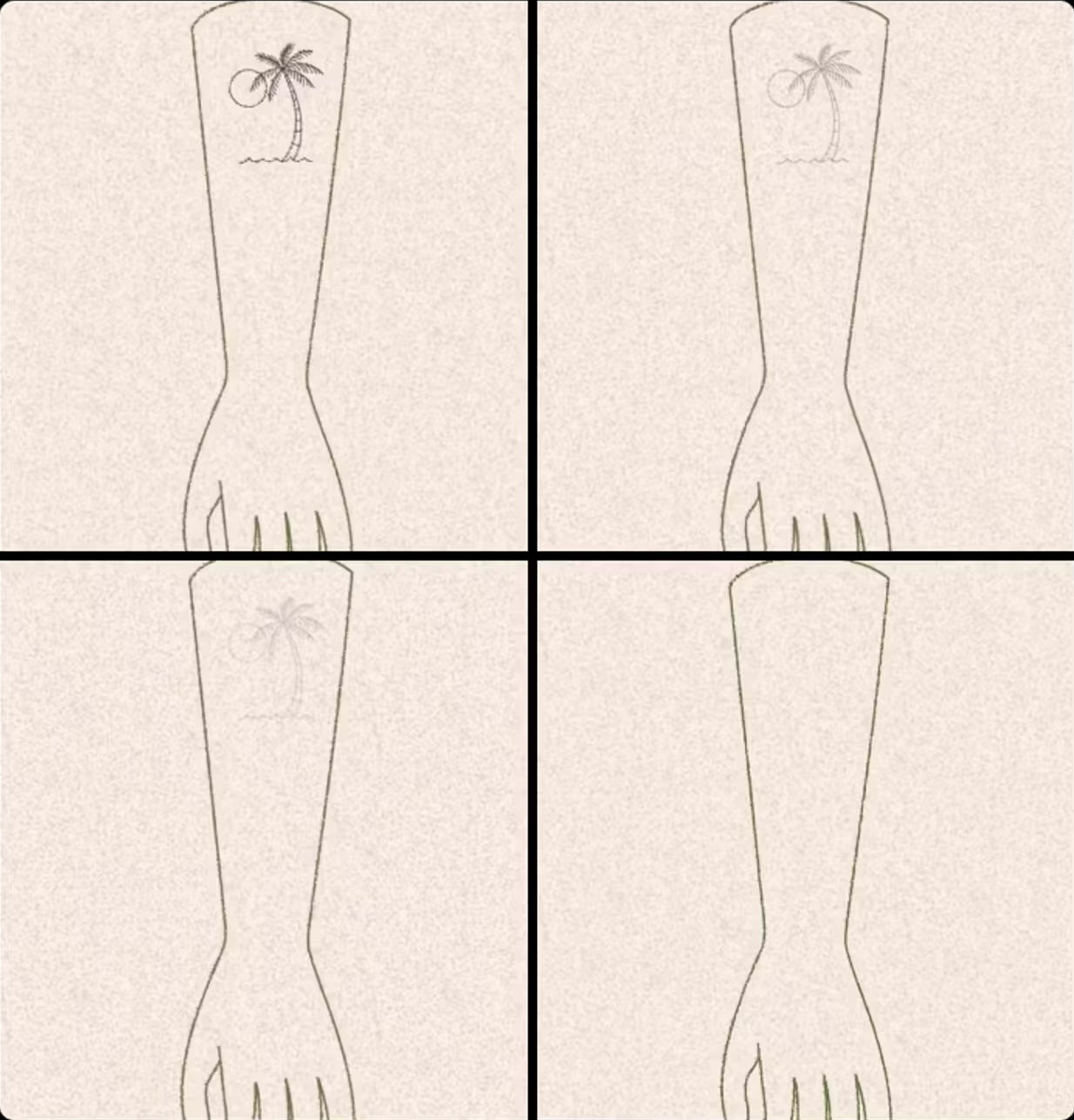 The more ink that is deposited into the skin, the longer it takes for your body to remove it. If a design has varying ink saturation, the darker lines will take longer to disappear than the lighter lines. Swipe on this example and notice how the dark lines fade slower than the lightly stippled portions.